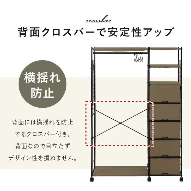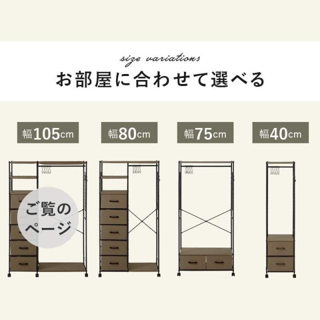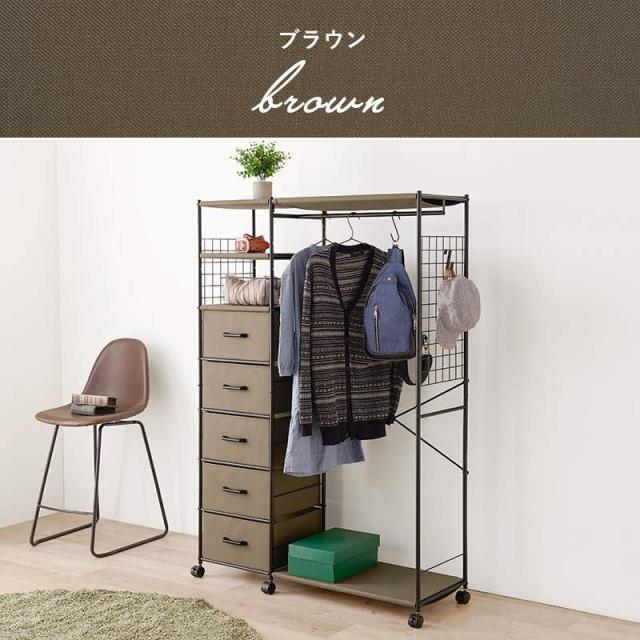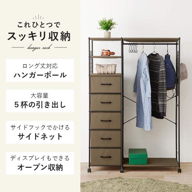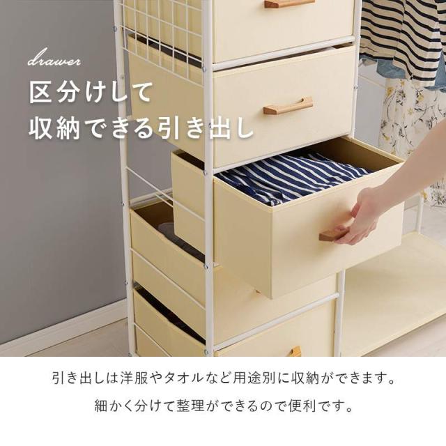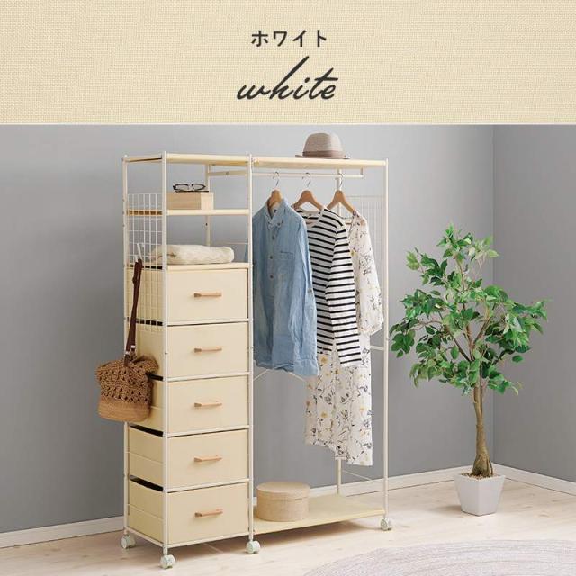 ハンガーラック ハンガー 衣類収納 パイプハンガー キャスター付き 引出5杯付き 幅105 KHR-3189