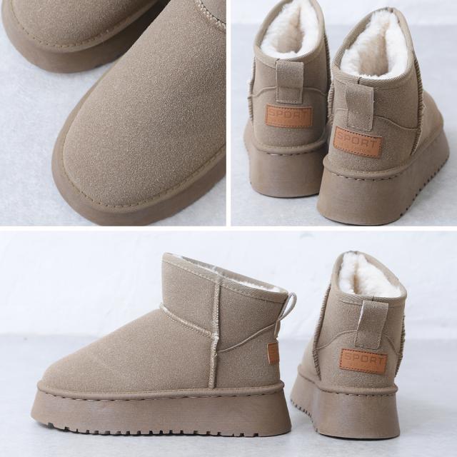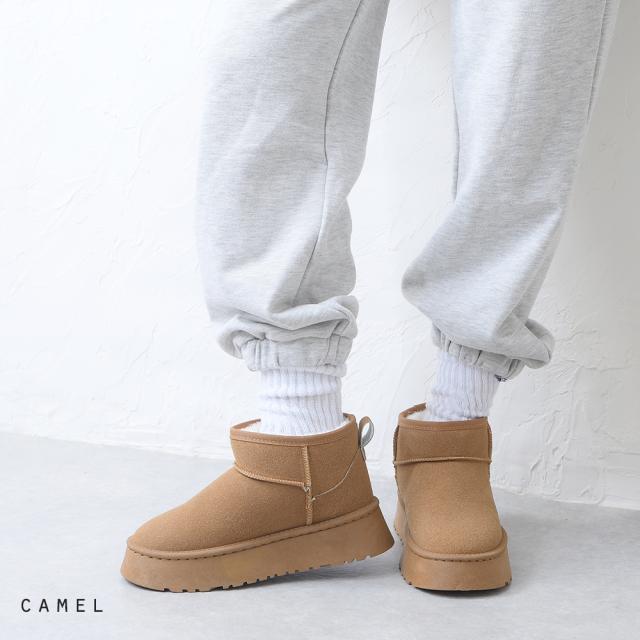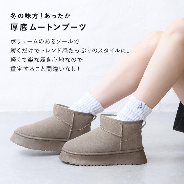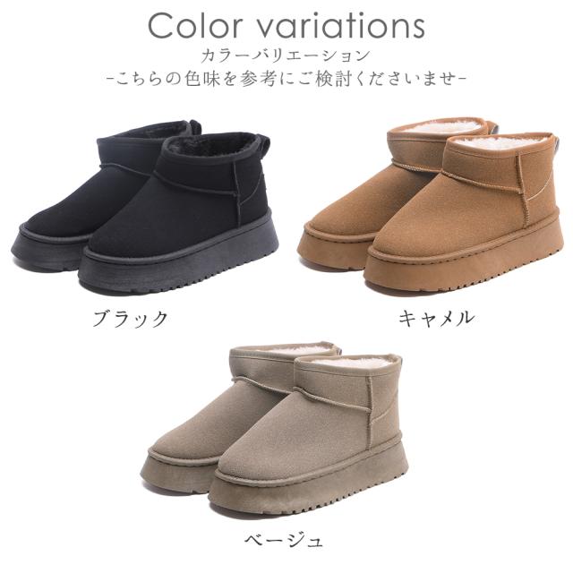ブーツ レディース ショートブーツ ムートン 厚底 暖かい 軽い 軽量 履きやすい 歩きやすい 防寒 暖かい ファー ボア 室内履き ブラック 黒 キャメル ベージュ 秋 冬