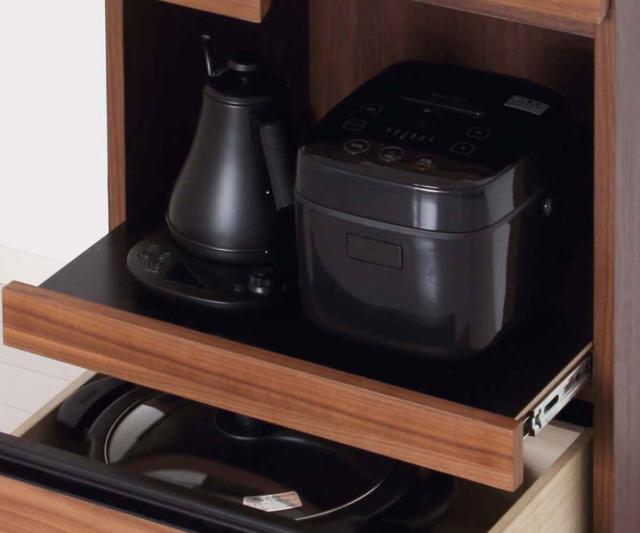 ●ポットや炊飯器などの収納に便利なスライドテーブル付きです。