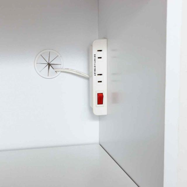 家電を綺麗に配線できるコード穴と、家電の使用時に便利な2口コンセント付きです。