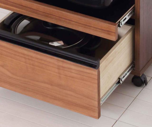 スライド棚と下の引出しは、奥に入れた物が出し入れしやすいフルスライドレール仕様です。