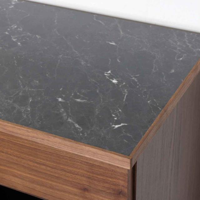 上品な大理石調の天板と便利な小引出し