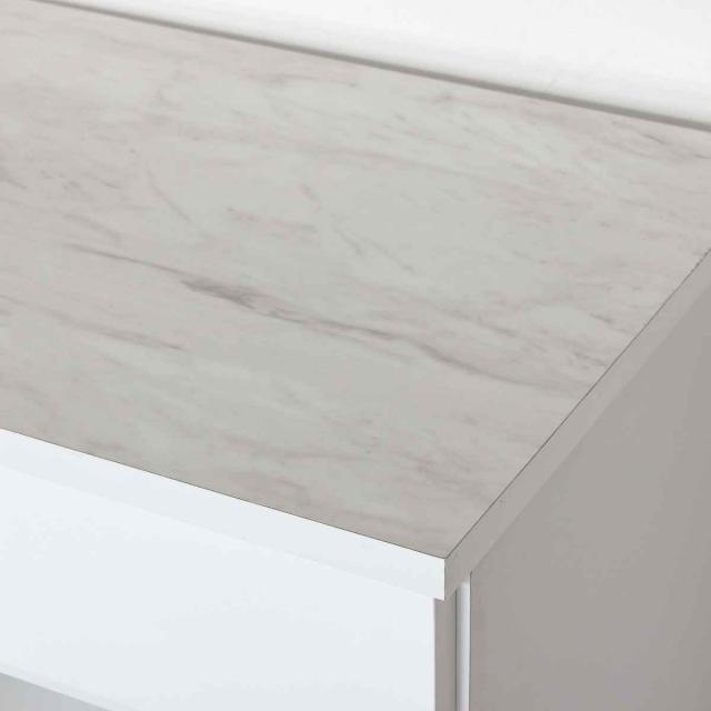 高級感のある大理石調の天板がアクセントとなっておしゃれなデザインです。小引出しには、キッチンツールやお部屋の細々とした小物をすっきり収納できます。