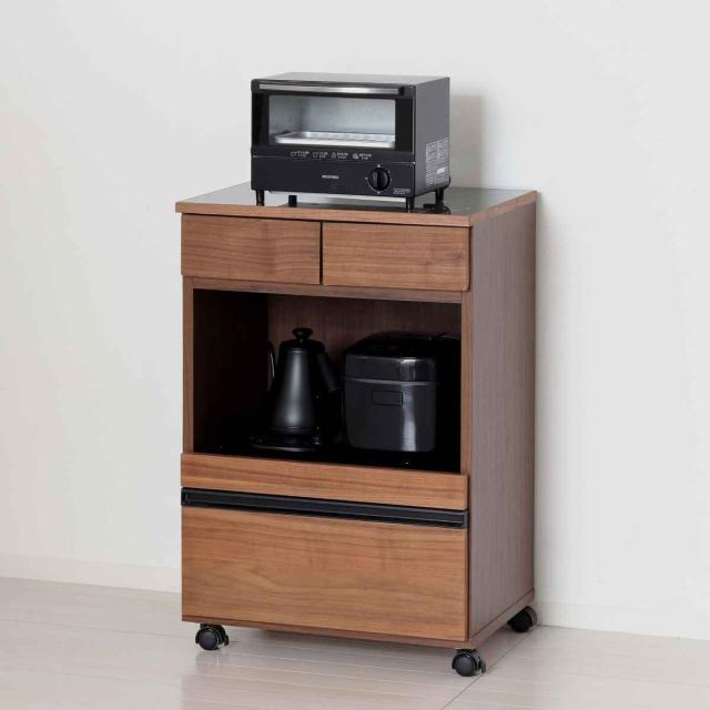 幅55cmと省スペースでも場所をとらない、コンパクトなレンジワゴンです。キャスター付きなので、移動も楽にできて掃除もしやすいです。