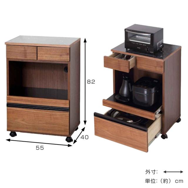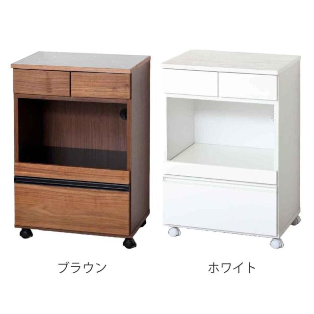 レンジワゴン コンパクト 大理石調天板 引出し付 幅55cm ( レンジ台 キッチンワゴン 収納 家具 ワゴン 電子レンジ 完成品 キッチン収納 大理石調 キャスター コンセント付 ブラウン ホワイト )