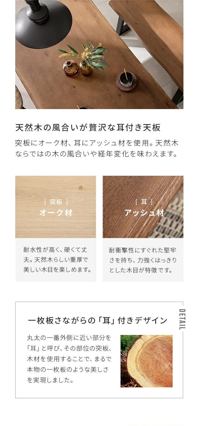 ダイニングテーブルセット 4人掛け 150×85 ベンチ チェア ダイニングテーブル ダイニングセット ダイニング テーブル チェアセット オーク アカシア 耳付き 高級感 木製 アンティーク風 北欧風 4人用 おしゃれ モダン 新生活