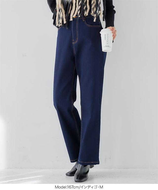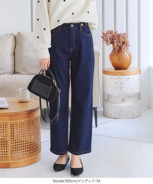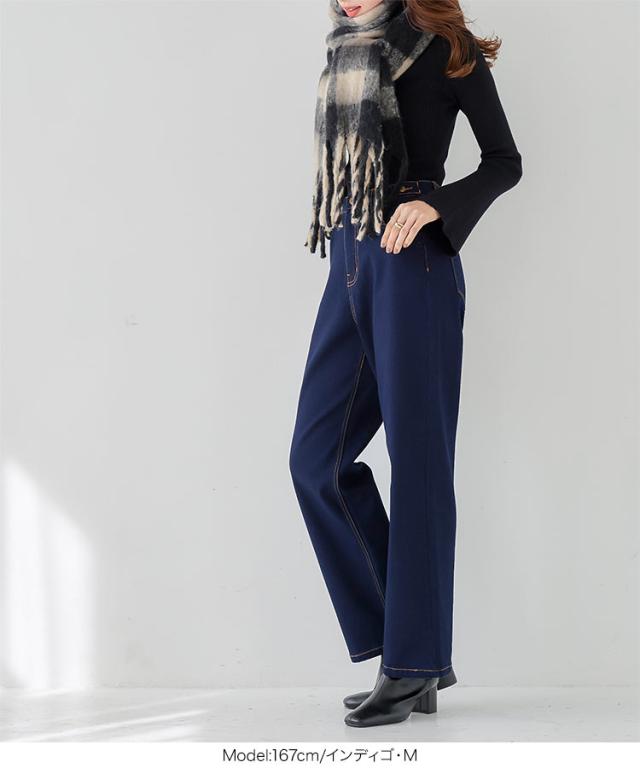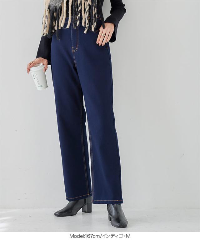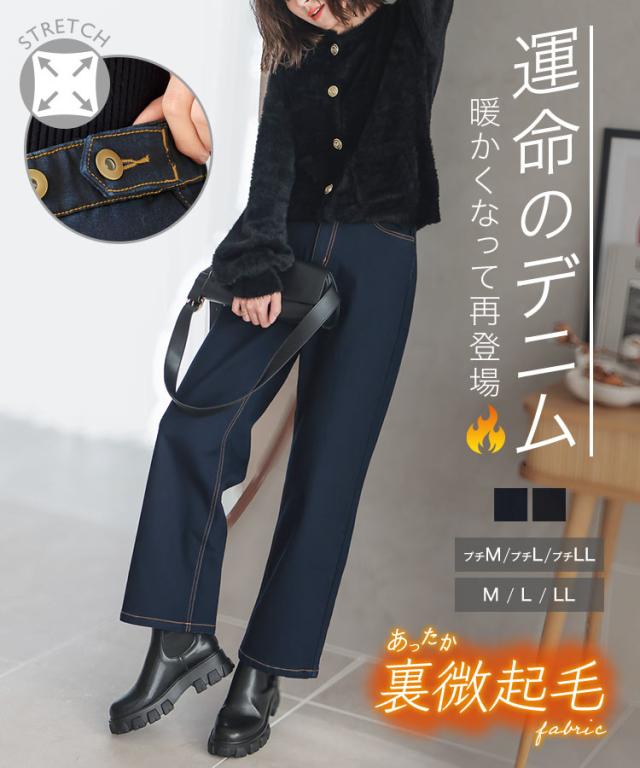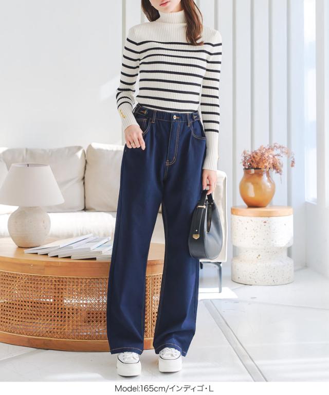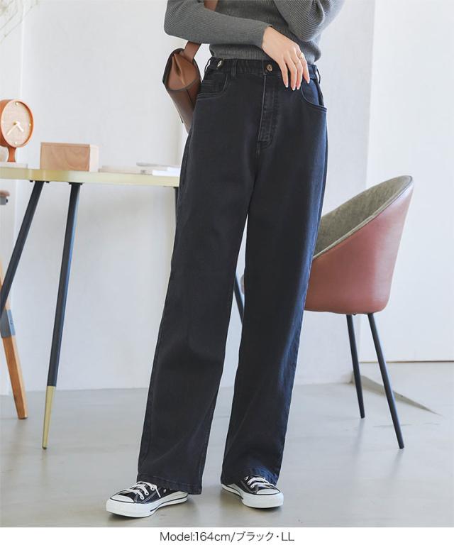 春新作 [ 裏微起毛 ] 超楽ストレッチストレートデニムパンツ M3992 入荷済 レディース 20代 30代 40代 LLサイズ Lサイズ Mサイズ ワイドデニム 楽ちん ストレスフリー ウエストゴムデニム ウエストゴムパンツ ボトム ズボン