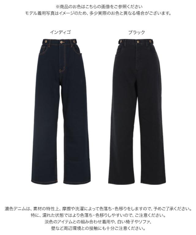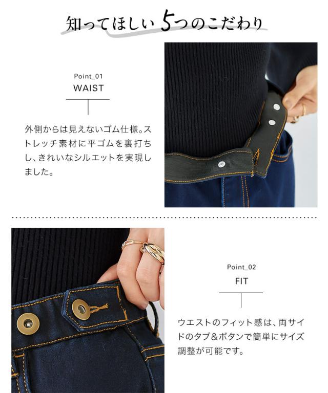 - ウエストが楽で良いです!ボタンで調節するのも便利です。良いデニムを買えました。
