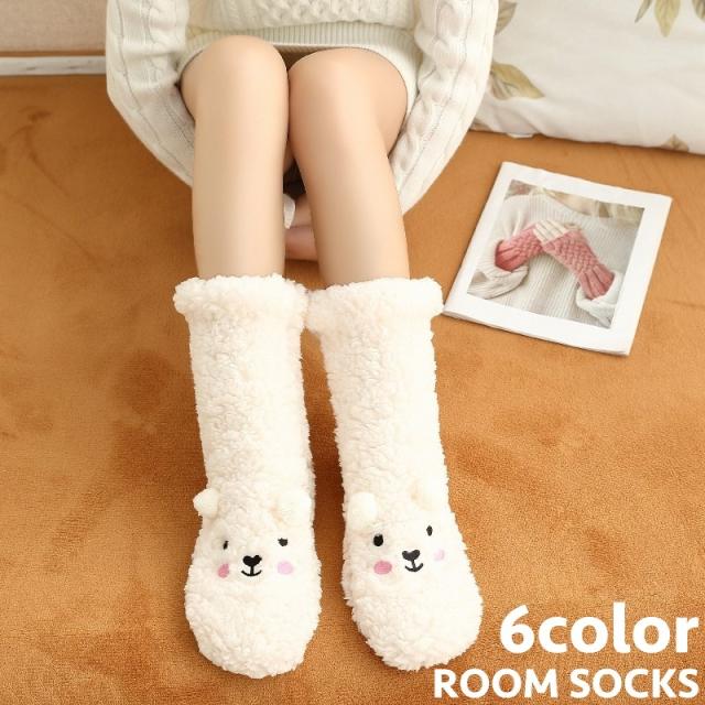 ルームソックス もこもこ 靴下 レディース クルーソックス くつ下 滑り止め付き アニマル 可愛い キュート 起毛 暖かい 防寒