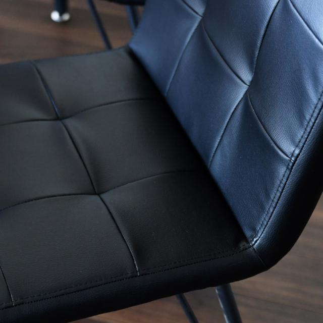 座面には合成皮革を使用しています。耐久性が高く汚れに強い素材なので、お手入れが簡単で優しい肌触りです。