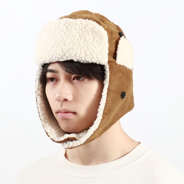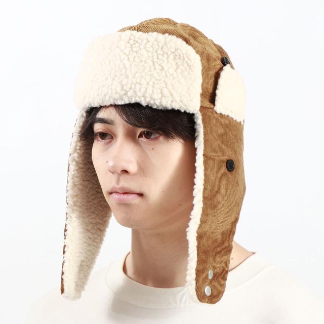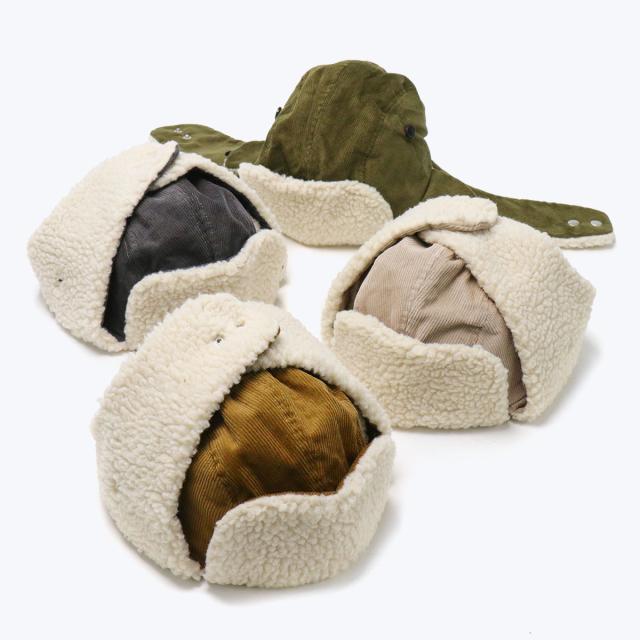 ボリューム感のあるデザインで秋冬気分が高まる、コーデュロイ素材のフライトキャップ。フロントや耳当て部分にはボアフリース素材、裏地には保温性のある綿入りのキルティングを採用した寒い季節にピッタリの仕上がり。耳までしっかりと暖めてくれてる耳当ては、上げたり下げたりすることで2パターンのかぶり方を楽しめます。