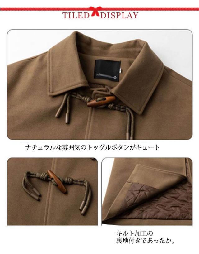 | 定番の暖かいダッフルコート。 しかっり高密度なコットン素材と相性よく大人っぽい雰囲気のダッフルコートに仕上げりました。 ゆったりとしたシルエット 全体にゆとりのあるサイズ設定を施しゆったりと着心地の良いシルエットが完成。 ふんわりとボディラインを隠してくれて厚みのあるニットをインナーに合わせても楽々羽織れるデザインです。 フード付きデザインで防風防寒に優れる。 ナチュラルな雰囲気のトッグルボタンがキュート キルト加工の裏地付きであったか。 カジュアルにも通学、通勤にも最適な秋冬定番人気のダッフルコートです。 服の上から羽織れる、冬のおしゃれに欠かせないコートです。 | |