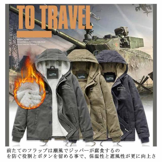 防寒着 ミリタリージャケット メンズ ミリタリージャケット デッキジャケット 冬物 N-1 アウター ジャンパー 裏起毛 アウトドア 厚手 暖かい ジップアップ 裏ボア フード付き おしゃれ かっこいい 人気 20代 30代 40代 50代 冬服 大きいサイズ おしゃれ