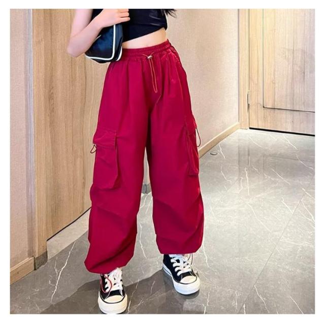 ダンス カジュアル 子供服 キッズ ダンスウェア ウエストゴム 裾ゴム ヒップホップ 女の子 ストリート ボトムス ロングパンツ 衣装 子ども ジュニア ワイドパンツ 練習着 k-pop hiphop 長ズボン ゆったり 無地 キッズ 韓国ファッション