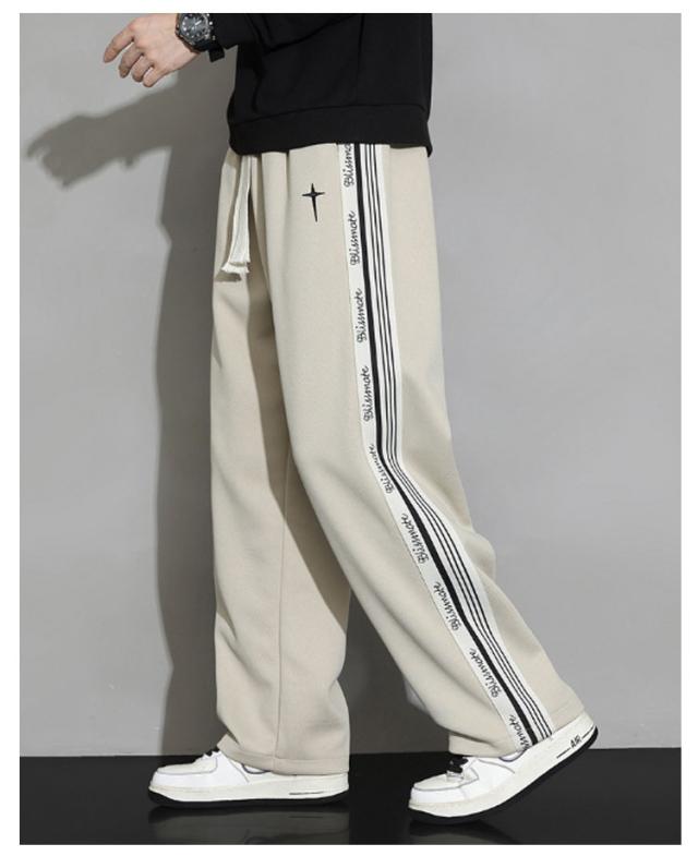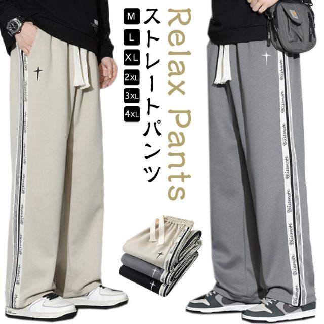 ストレートパンツ アメカジ イージーパンツ メンズ ライン入り ストリート系 ロングパンツ ワイドパンツ パンツ カジュアルパンツ ミリタリーパンツ リラックス ストリート ルームパンツ 運動用 ルームウェア 部屋着 ダンスパンツ 春 秋 冬