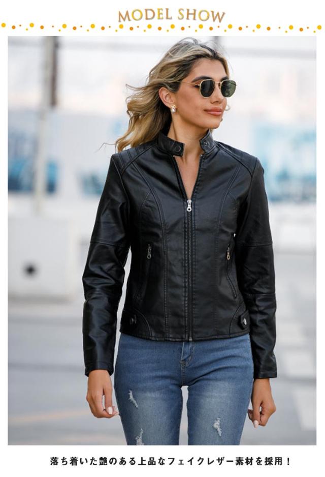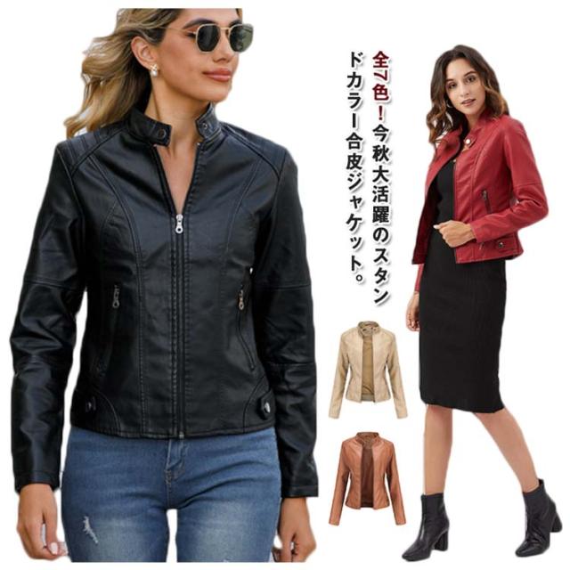 PU合皮 レディース ジャケット フェイクレザー ブルゾン 春 スタンドカラー ライダースジャケット M アウター レザージャケット レザージャケット 秋 冬 おしゃれ 大きサイズ XS S 合皮ジャケット L XL 2XL 3XL