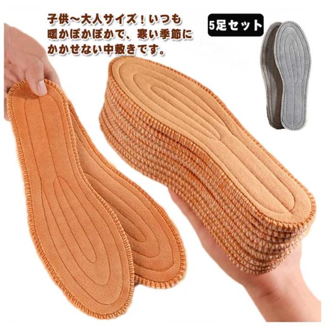 インソール 暖かい 5足セット ウール混 15cm-27.5cm フルインソール 女性用 ウール混 あったか 温かい 防寒 寒さ対策 保温 もこもこ 男性用 子供 通気性 ブーツ スニーカー 秋冬