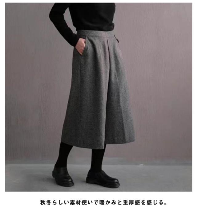 フレアパンツ レディース スカーチョ フェイクウール 大きいサイズ 秋冬 ガウチョパンツ ゆったり おしゃれ 八分丈 アンクルパンツ フェイクウール ろんぐぱん カジュアル ワイドパンツ Aライン M L XL 2XL