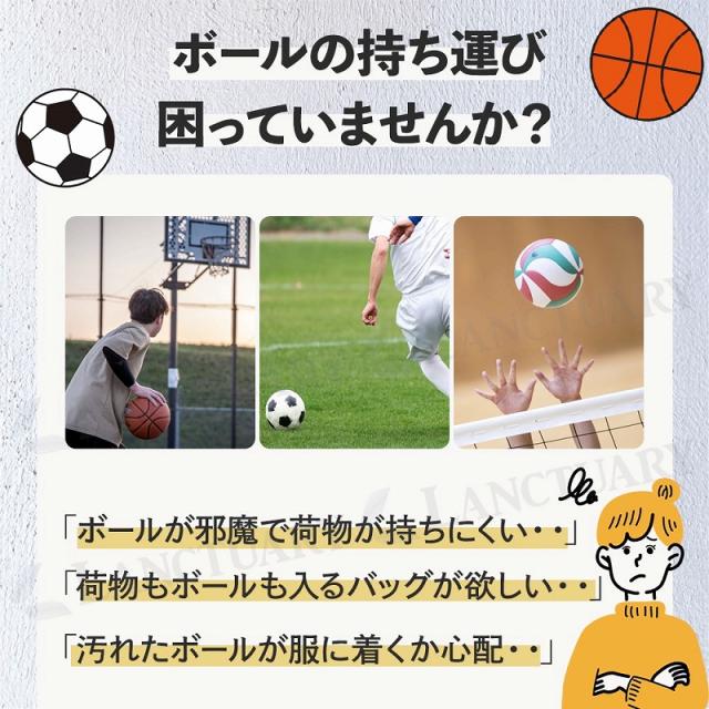 荷物もボールも入る多機能バッグ!バスケット、サッカー、バレーなどの競技をする方なら一つは持っていたい商品です!お好きなカラーをお選びください!