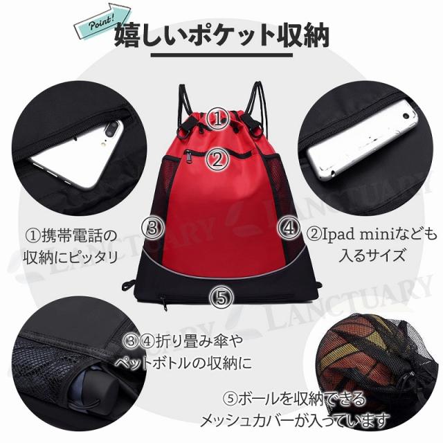 送料無料 スポーツバッグ ナップサック リュック ボールが入る