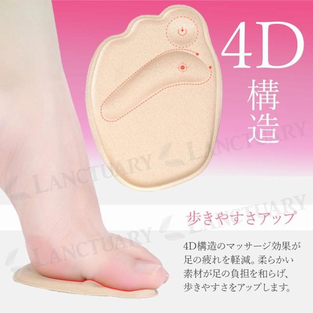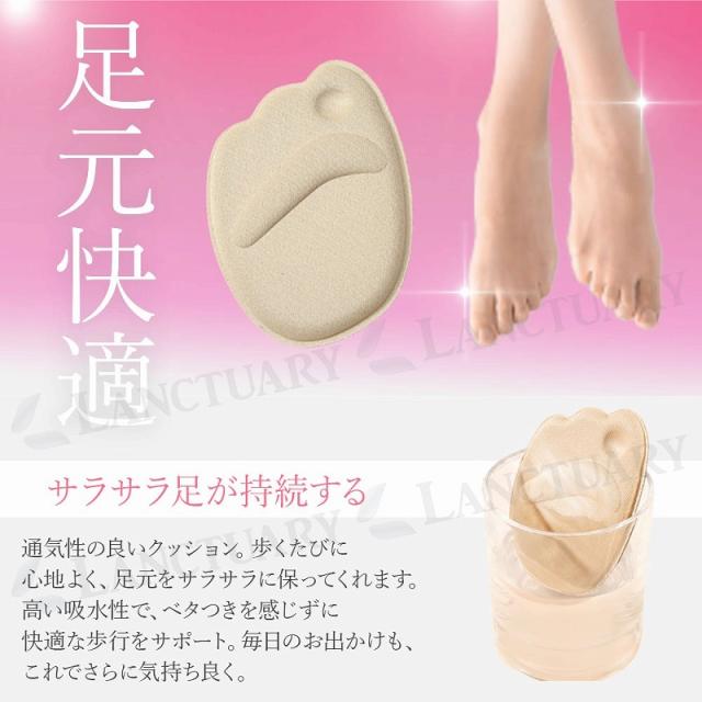 上品なベージュカラーで、どんなシューズにも合わせやすいのが魅力です。シルキーなタッチと立体的なデザインで、足裏全体のプレッシャーをしっかりと分散させます。これにより、疲れにくい歩行が実現します。さらに、ノンスリップの設計で、滑りにくいのも特長です。