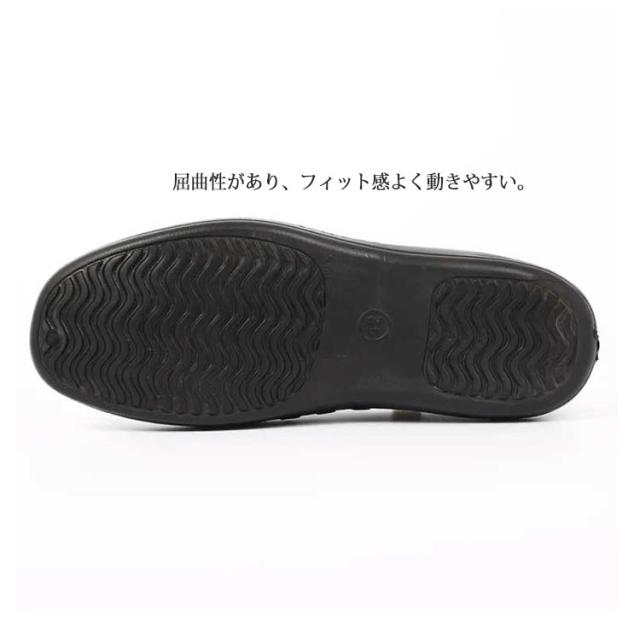 | 耐摩耗性があるので靴底が減りにくく、スニーカーのような履き心地です。 水と油に強くすべりにくい。 屈曲性があり、フィット感よく動きやすい。 サイズが豊富なのでいろんな方にお使いいただけます。 シンプルゆえに合わせるスタイルを選ばず、日常の様々なシーンで活躍してくれます。 | |
