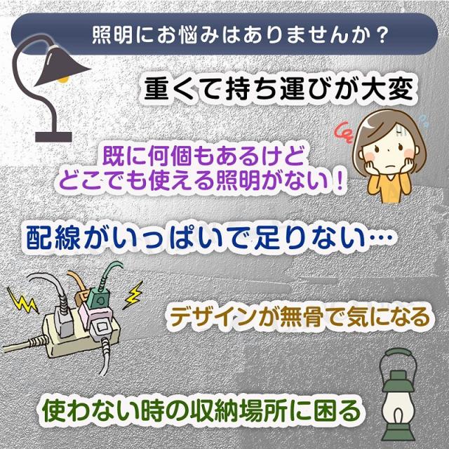 | 商品の説明 | シンプルでおしゃれで機能的!LEDランタンです 軽くて折りたたみでき持ち運びやすい!ナイトランプ、懐中電灯、卓上ライト、吊り下げてランタンなど4つのタイプの使い方ができます 3段階のタッチセンサーで調光 乾電池がいりません。 本体はつや消し塗装、持ち手は木製とシンプルな金属パーツ。ぬくもりあるデザインでどんなお部屋やインテリアにも馴染みやすいです 360度自由に角度かえられ、じゃばらを伸ばせば高さも変更可能 お部屋での日常使いやアウトドア、非常用にも役立ちます |
