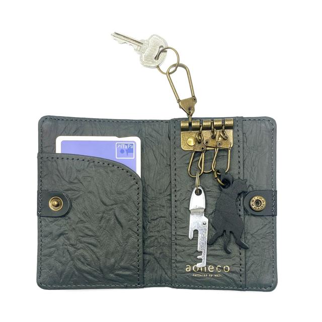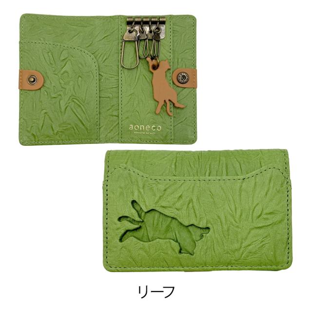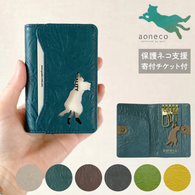 【レビュー投稿で+5%還元】アオネコ キーケース 4連 カードケース レディース 日本製 an003 aoneco 保護ネコ支援 寄付チケット付 チャリティー waji 本革 レザー 日本製 ネコ 猫 アニマル 縁起 風水 お祝い ギフト プレゼント