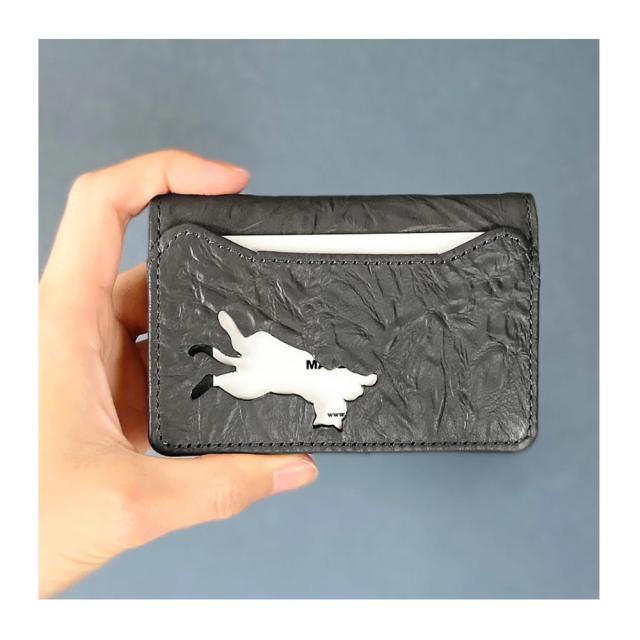 深みのある色になるよう、顔料ではなく染料をメインに色付け。ムラのある風格ある表情に仕立てました。数百種類あるパターンから選びぬいた、ネコの毛並みを意識した型押しを使用。同じデザインがふたつとない歪に施されたラインが特別でスタイリッシュな雰囲気を醸し出します。