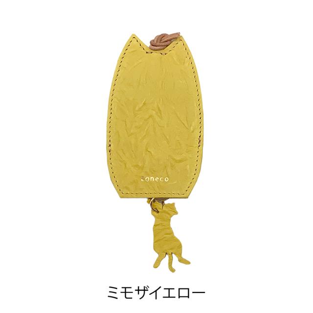 革ひもの先には二重リングが付いていてカギを数本装着できます。カギを使う時は下ろして、使わない時は革ひもを引き上げてカバー内に収納、スリムなネコモチーフのキーカバー。やわらかく手になじむ革を使用し、ひとつひとつ職人が丁寧に仕立てています。