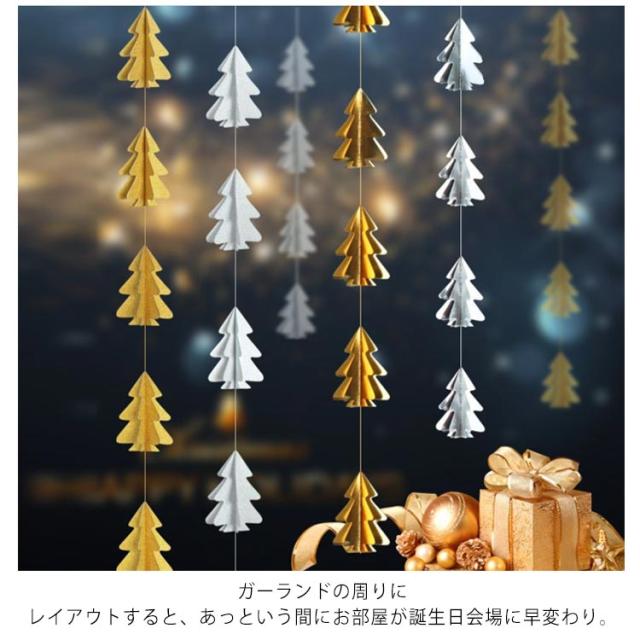 | クリスマスの飾り付けはばっちり!! 誕生日やパーティーを鮮やかに演出してくれるクリスマスツリーガーランド。 バルーンやペーパーファン、ドライフラワーやリースなどとも相性◎ ガーランドの周りにレイアウトすると、あっという間にお部屋が誕生日会場に早変わり。 お好みのデコレーションを楽しんでください。 | |