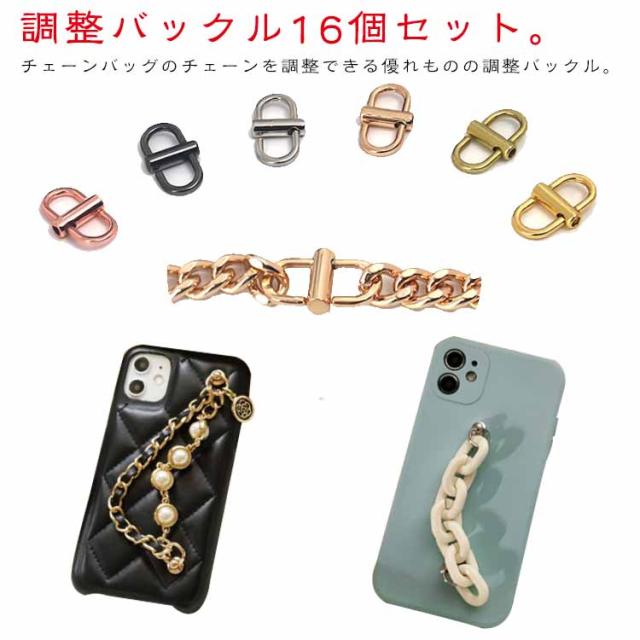 バッグチェーン 16個入り チェーン 調整 6色 チャーム 短い 長さ調節 調整バックル ショルダー 材料 16個入り パーツ 金具 ゴールド シルバー メタルバックル
