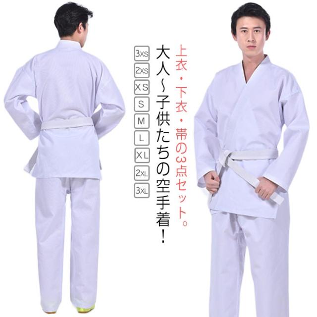 上下白帯セット 空手衣 空手着 3点セット 道着 大人 パンツ 帯 空手衣 初心者 稽古 熟練者 体育 道場 柔道着 授業用 中学生 子供 キッズ ジュニア 白帯 学校 道衣 授業 学校指定 上衣 高校生 高等学校 部活 ホワイト 無地