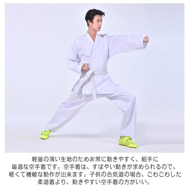| 上衣・下衣・帯の3点セット。大人〜子供たちの空手着! 綿混生地で乾きやすい、耐久性も十分です。柔らかく、肌触りはめっちゃよいです。 軽量の薄い生地のため非常に動きやすく、組手に最適な空手着です。空手着は、すばやい動きが求められるので、軽くて機敏な動作が出来ます。子供の合気道の場合、ごわごわした柔道着より、動きやすい空手着の方がいい。 トレーニング、ボクシング、ムエタイ、テコンドー、スパーリング、パンチ、相撲やジム用に使用できます。 白帯付きなので初心者におすすめです。初心者、小学生、中高生、道場練習用! | |