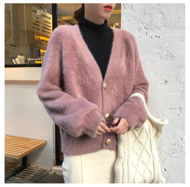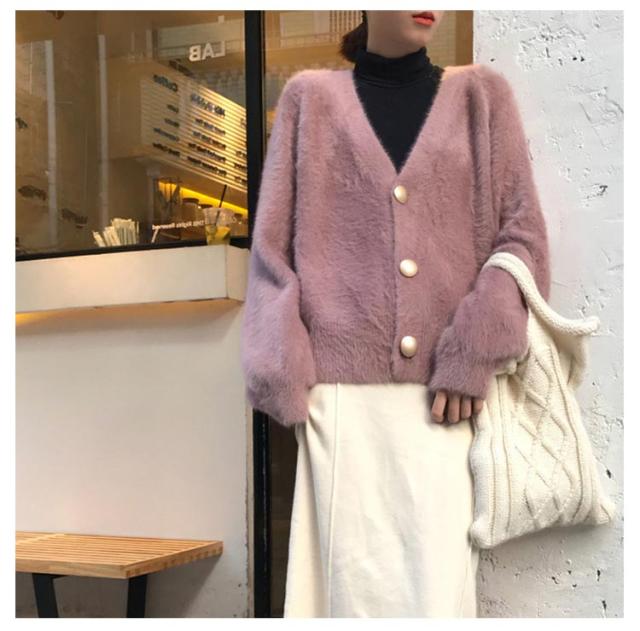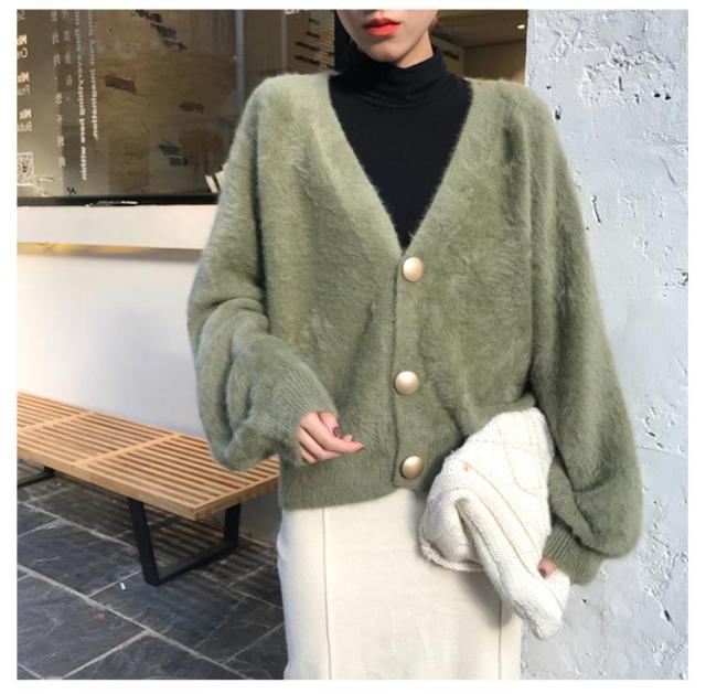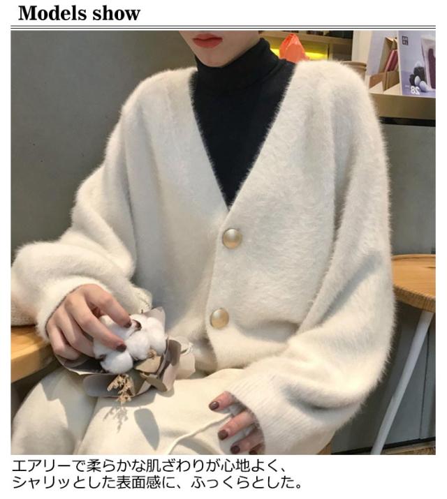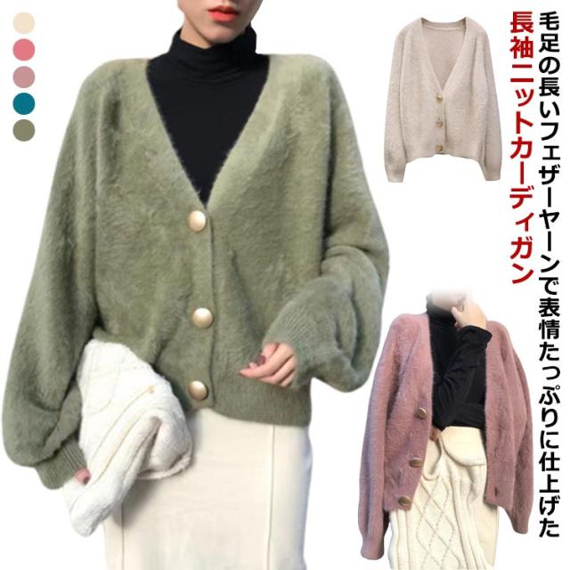 レディース ニット 秋冬 フェザーヤーン カーディガン 長袖 体型カバー レディース ニットカーディガン ふわふわ アウター Vネック コート モコモコ 片畦編み 冬服 厚手 前開き 羽織 暖かい 防寒 無地 柔らか