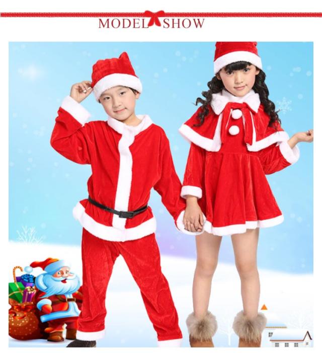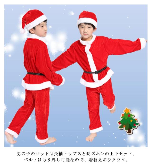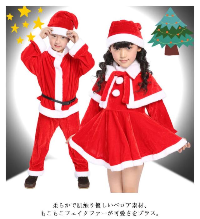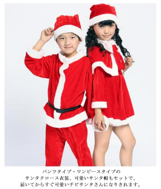 | サンタクロースコスチューム♪子供用サンタさん衣装セット。 100〜160cm パンツタイプ・ワンピースタイプのサンタクロース衣装、可愛いサンタ帽もセットで、届いてからすぐ可愛いチビサンタさんになりきれます。 柔らかで肌触り優しいベロア素材、もこもこフェイクファーが可愛さをプラス。 男の子のセットは長袖トップスと長ズボンの上下セット、ベルトは取り外し可能なので、着替えがラクラク。 女の子のセットはふんわり広がるワンピースとケープのセットアップで、華やかで可愛い。 パンツタイプ、ワンピースタイプからお好みでセレクト♪ 幼稚園の子から中学生まで豊富なサイズ展開、兄弟・姉妹お揃いも素敵ですね。 クリスマス、パーティー、誕生日などいろんなシーンで大活躍! | |