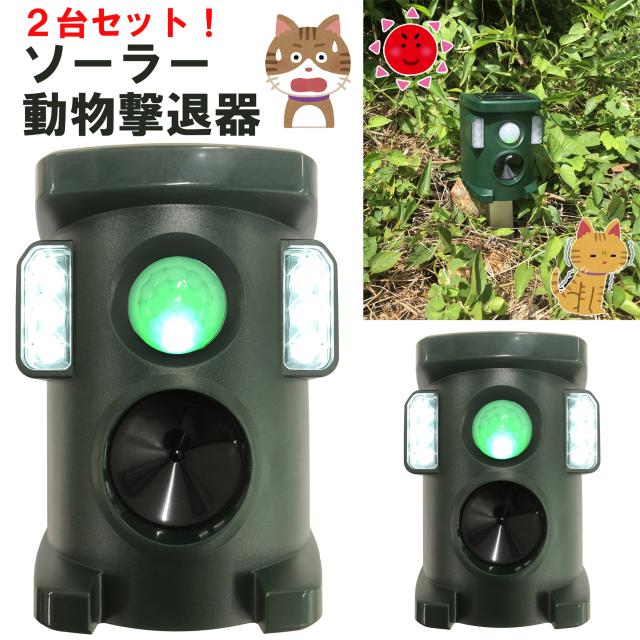 【2台セット】 猫よけ 超音波 音 ソーラー ベランダ 強力 猫除け対策 充電式 フラッシュ付き 動物 撃退器 防獣ライト USB充電 USBケーブル付き 防水 防塵 センサー ネズミ 犬 狐 キツネ 猫 ネコ 穴熊 鳥 とり 猪 野生動物 太陽光 超音波動物撃退器 強力 モード調節可能 防雨