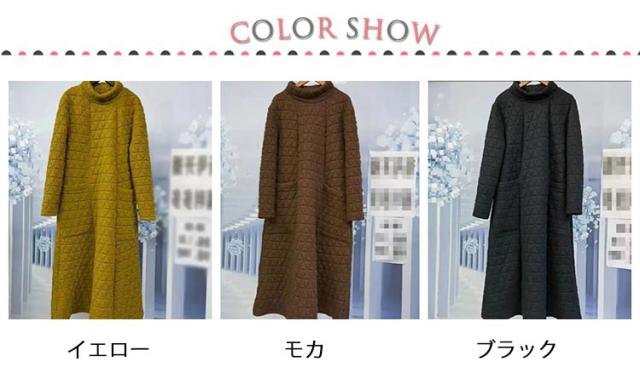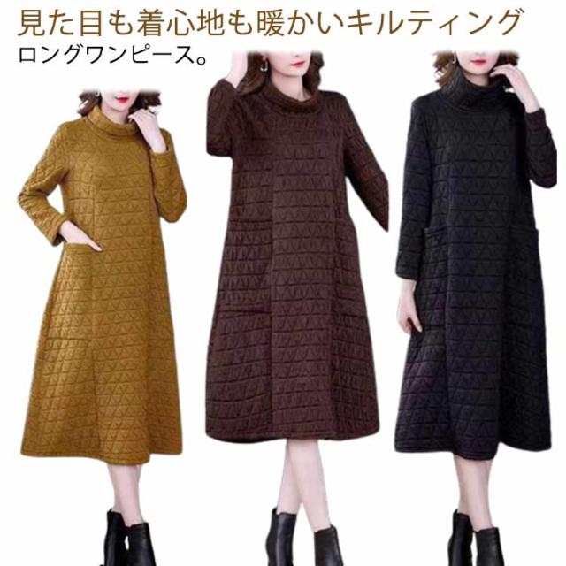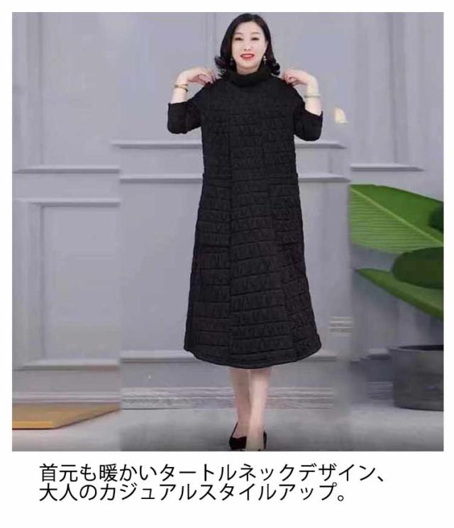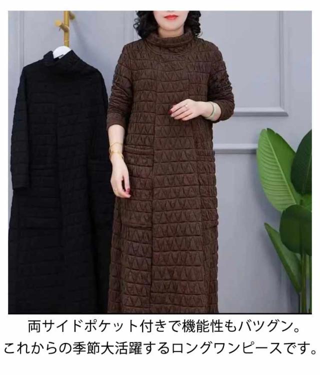 ロングワンピース ロング XL−5XL チュニック レディース キルティング ハイネック XL−5XL 無地 防寒 ワンピース 長袖 ロングワンピ 部屋着 ルームウェア体型カバー ゆったり 大きいサイズ 可愛い