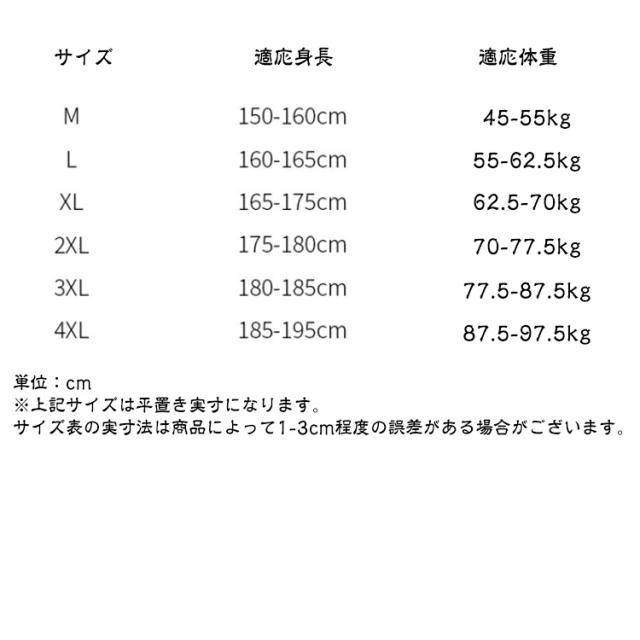 | サイズ | M L XL 2XL 3XL 4XL |