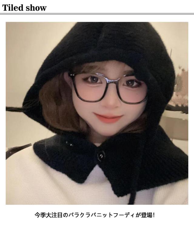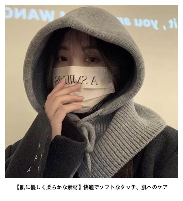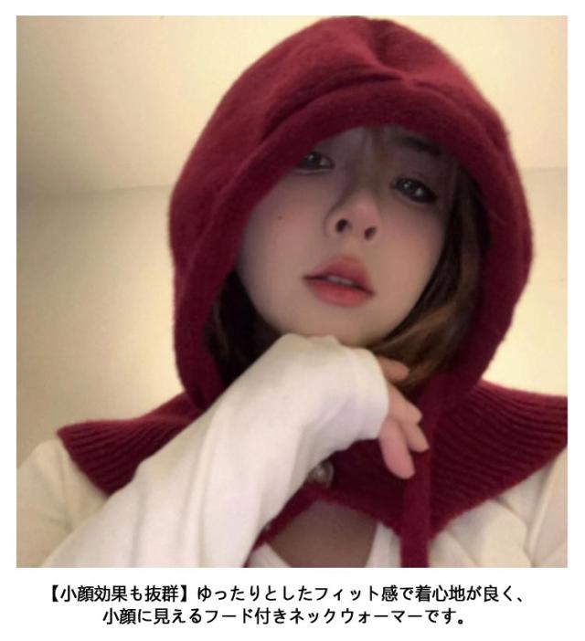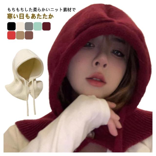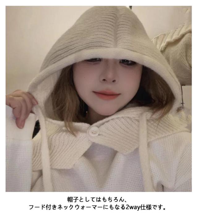フード付きネックウォーマー ニット 巻き物 バラクラバ 帽子 バラクラバ リブ編み 付けフード ぼうし フード付き レディース ニットフード フード 個性的 おしゃれ レイヤード 防寒 暖かい 韓国 秋 冬