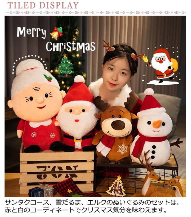 | 一緒にクリスマスを迎えましょう! サンタクロース、雪だるま、エルクのぬいぐるみのセットは、赤と白のコーディネートでクリスマス気分を味わえます。 単なるおもちゃではなく、装飾品として、家にクリスマスの雰囲気を与えてくれます。 お部屋、車など、さまざまな場所に置ける、可愛いインテリア♪ | |