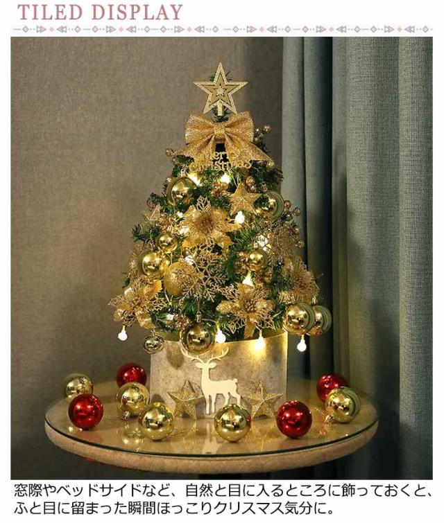 飾り付け LEDイルミネーション クリスマスツリー ゴールド 小型 卓上 商店 北欧 オーナメントセット 金 部屋 60cm クリスマスツリー 店舗 インテリア クリスマス飾り おしゃれ