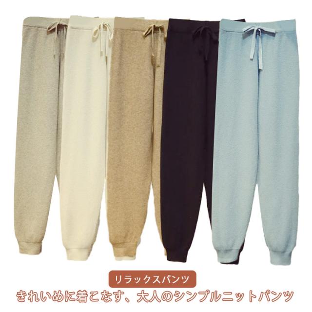 イージー ニットパンツ ニットジョガーパンツ ボトムス ロングパンツ レディース 重ね着 リラックス ニットジョガーパンツ ジョガー 総針編み レイヤード 楽ちん 秋冬 裾絞り ウエストゴム カジュアル 春 秋 冬 リラックスパンツ