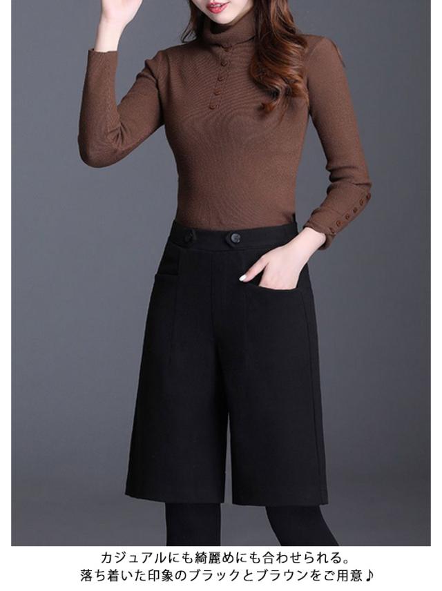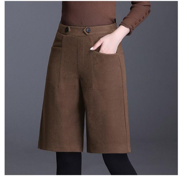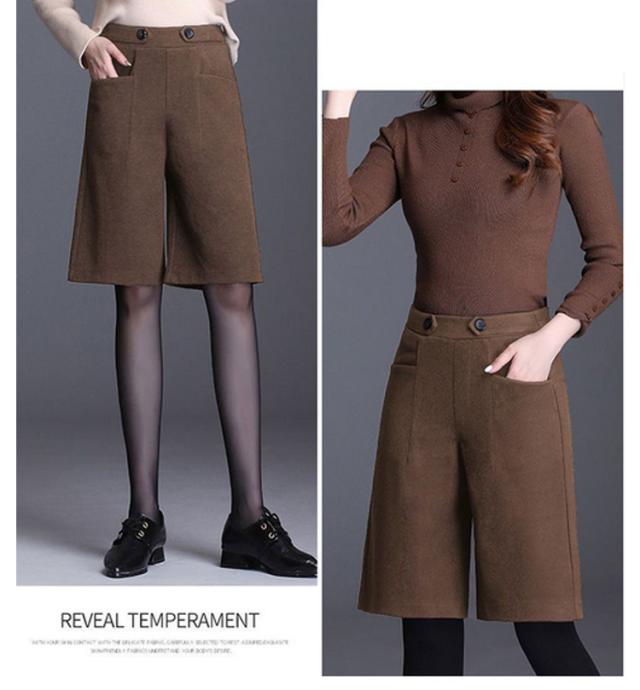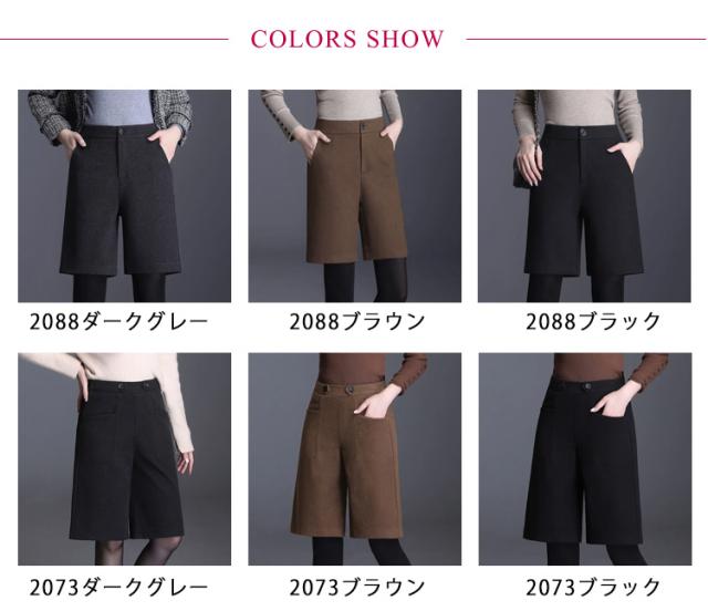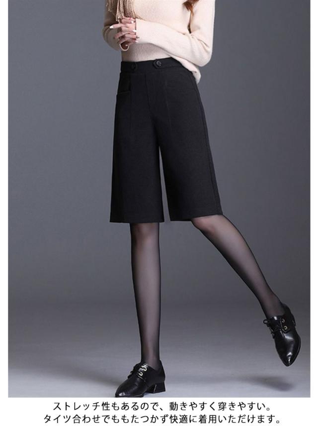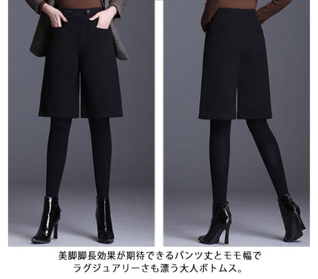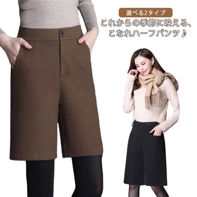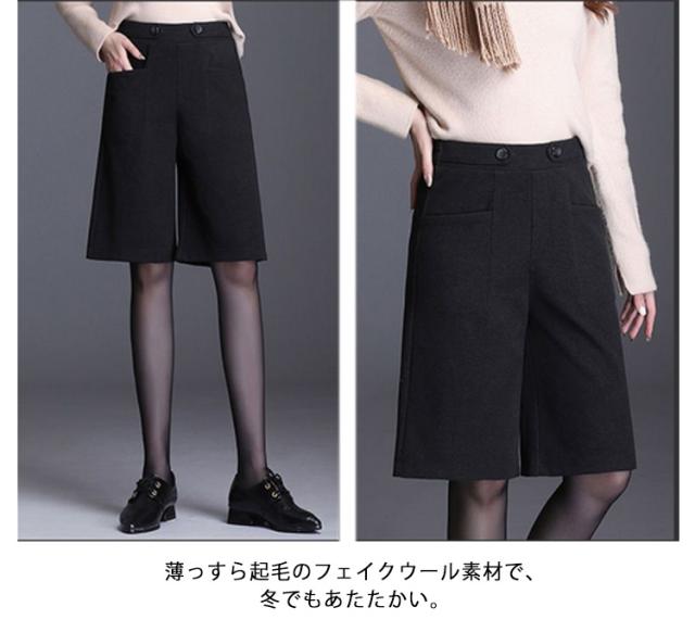 5分丈 暖かい フェイクウール 選べる2タイプ パンツ レディース 選べる2タイプ 冬 ハーフパンツ きれいめ 柔らかい 秋 ズボン あったか ボトムス ワイドパンツ ハイウエスト 無地 すっきり 体型カバー ゆったり 春 秋 冬 大人 20代 30代