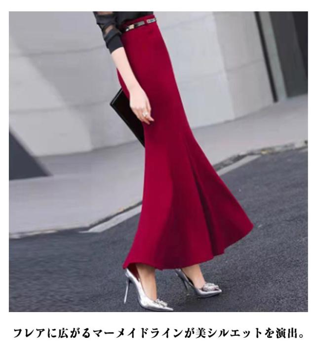 可愛い レディース マーメイド 着痩せ フォーマル タイトスカート マーメイドスカート ハイウエスト ロングスカート スカート フレアスカート マーメイド 秋 美脚 マキシ丈 ロング 無地 シンプル オフィス 上品 エレガント