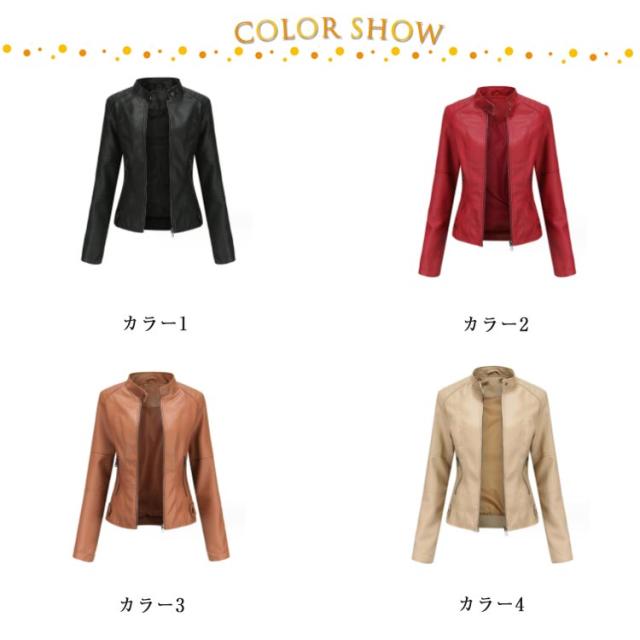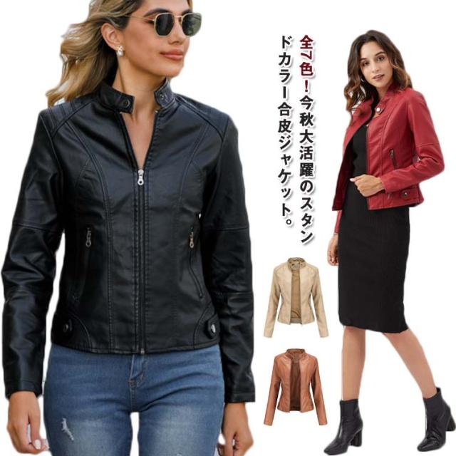 スタンドカラー レザージャケット 冬 アウター 合皮ジャケット レディース 立ち襟 ジャケット PU合皮 ブルゾン フェイクレザー S 秋 レザージャケット おしゃれ 大きサイズ XS ライダースジャケット M L XL 2XL 3XL