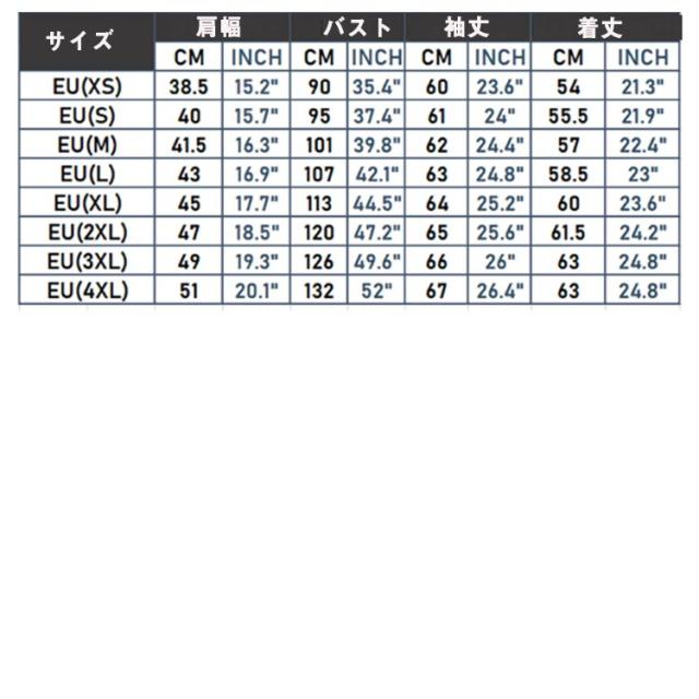 | サイズ | XS S M L XL 2XL 3XL 4XL |