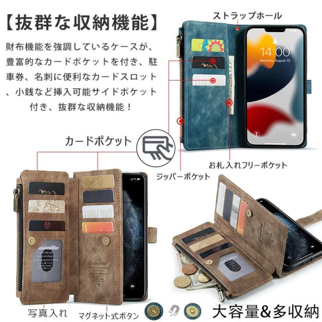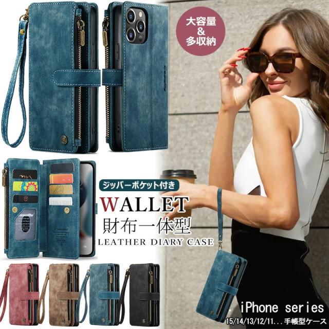 iphone 16proケース手帳型 財布デザイン アイフォン12ミニ 16Plus 16ProMax ケース ビジネス スマホケース iPhone 15 14 13 12 mini 11 SE XR XS 7 8 Plusケース 小銭入れ コインケース 横置きスタンド ジッパー式 財布一体型 ストラップ 全面保護 カード入れ 財布型