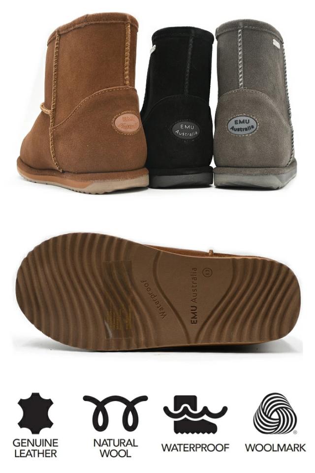 EMU Australia エミュ 完全防水 ムートンブーツ T10980 Brumby Mini ブランビーミニ ムートン ブーツ 本革 レザー レインブーツ ウォータープルーフ ショートブーツ ファー ボア