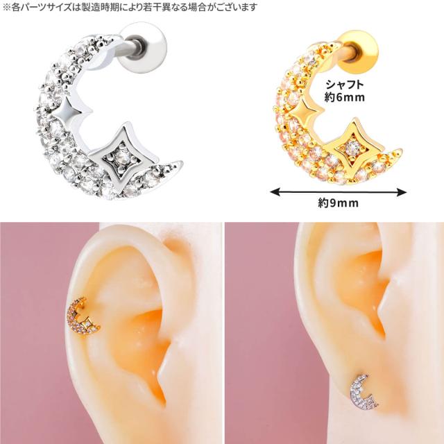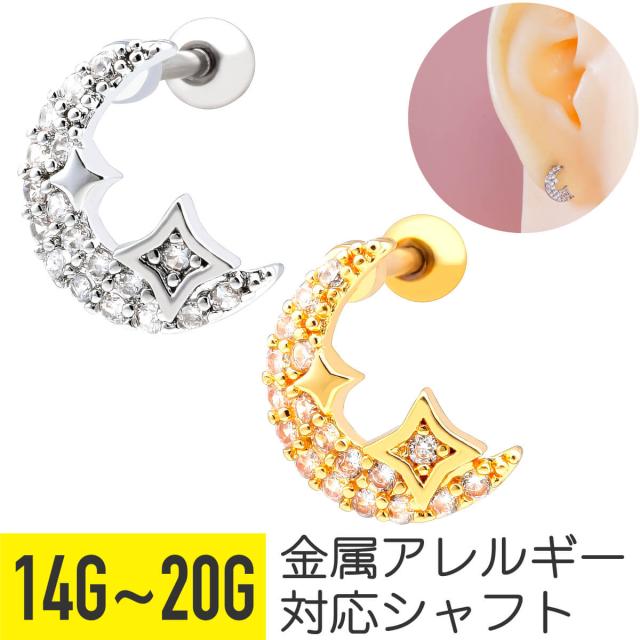 ムーン スター ライト ビジュー ストレートバーベル 14G 16G 18G 20G サージカルステンレス ジルコニア ヘリックス 軟骨 ボディピアス cz